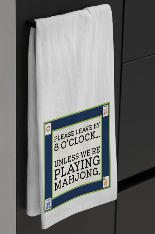 Mahjong- Please leave by 8 o'clock... unless... Tea Towel